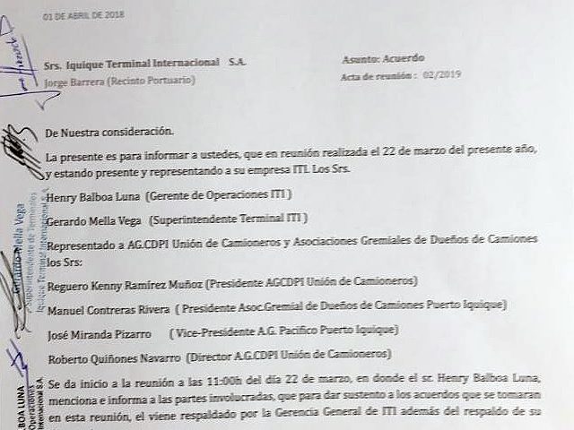 Entre A.G. de Dueños de Camiones Pto. Iquique, A.G. CDPI Unión de Camioneros y Terminal Internacional Iquique, y AG Pacífico Puerto Iquique.